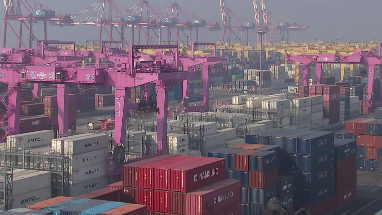 인천 신항 터미널에 수출품 컨테이너를 실은 화물차들이 쉴 새 없이 오갑니다.