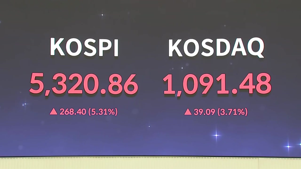 코스피는 5. 49% 오른 5330포인트로 개장하며 단숨에 5300선을 회복했고요.