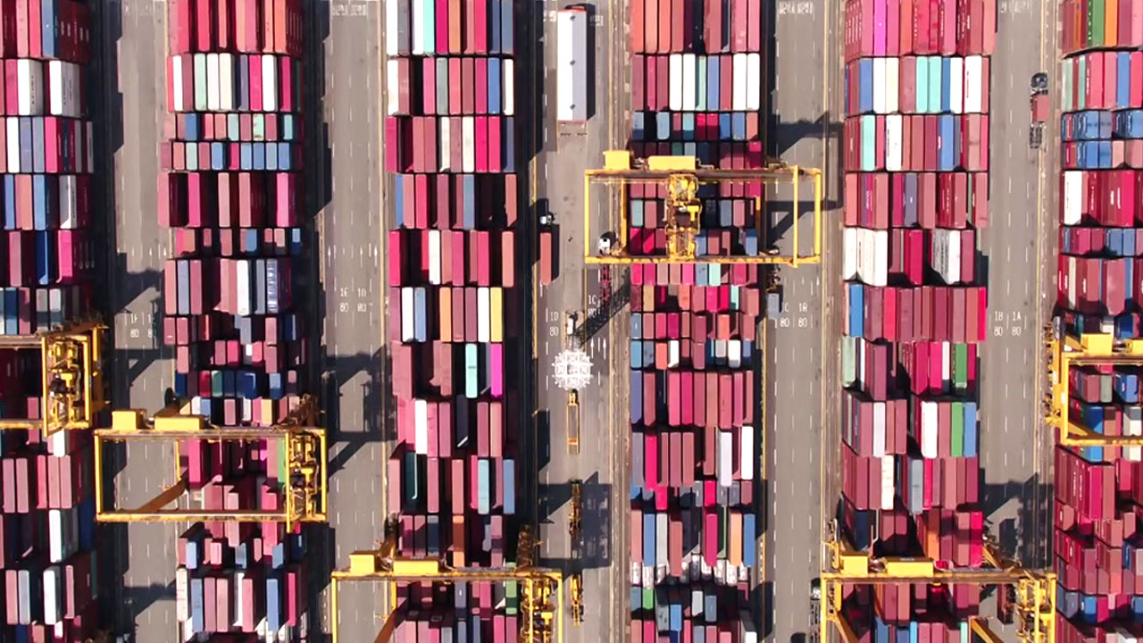 호르무즈 해협 봉쇄로 물류가 멈춰선 중동 수출은 1년 만에 반토막이 났습니다.