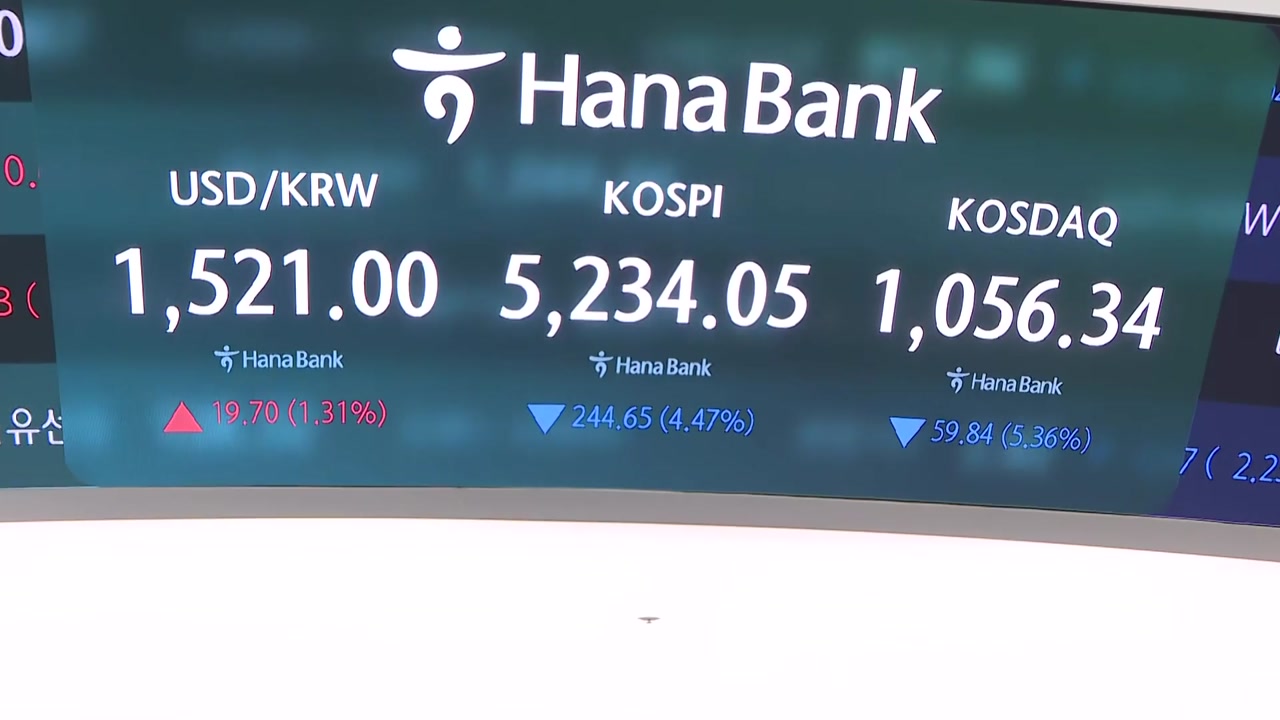 코스피는 오늘(2일) 4.47% 내린 5,234으로 거래를 마쳤습니다.