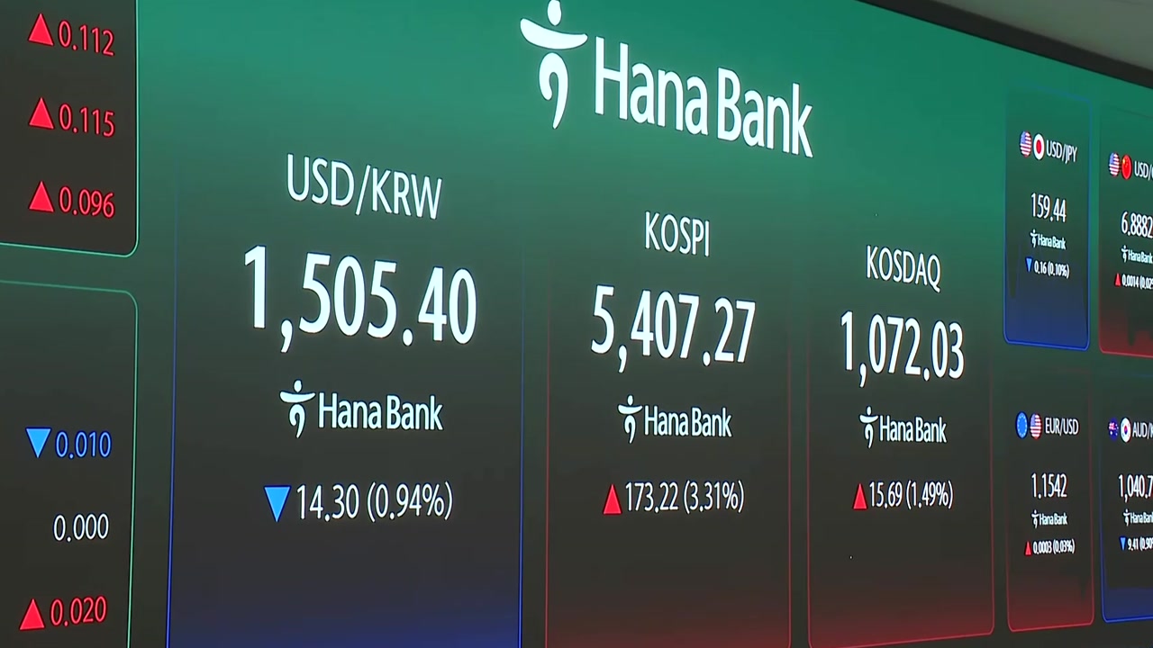 장 초반 한때 5,400선을 웃돌기도 했지만 이후 오름폭을 소폭 줄여 2.74% 오른 5377.30에 장을 마쳤습니다.