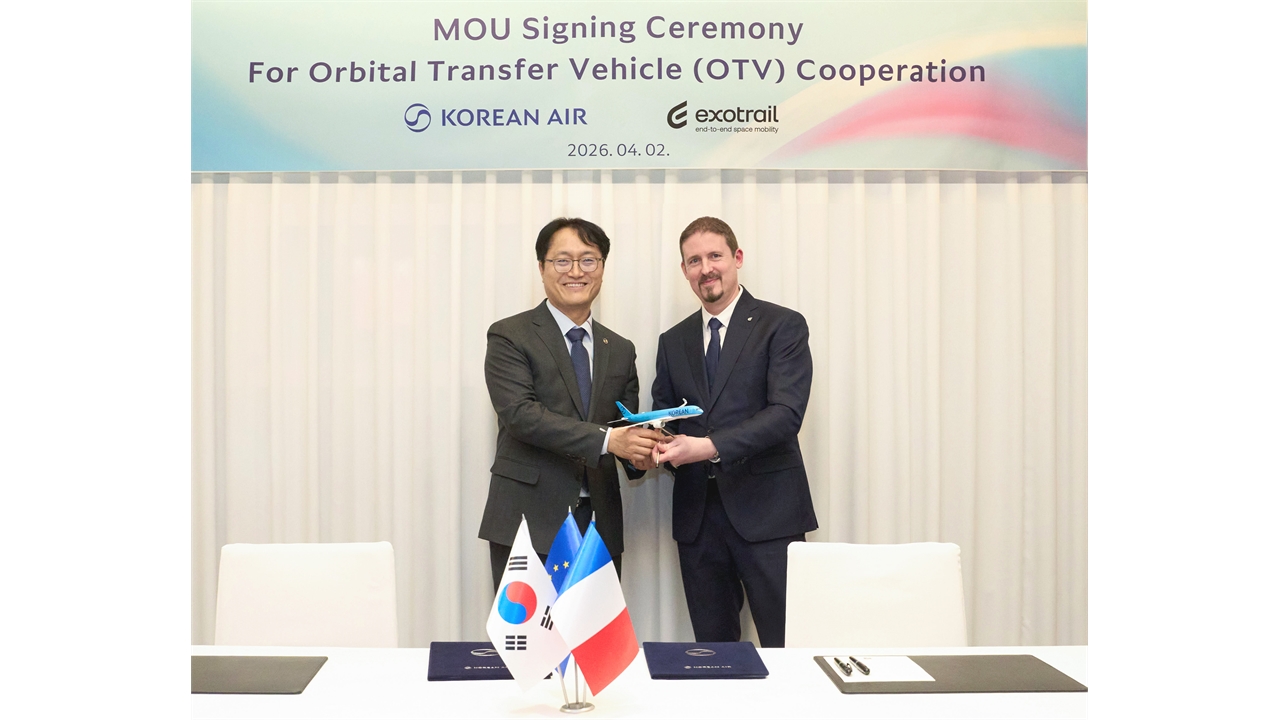 대한항공이 프랑스 우주기업 '엑소 트레일'과 우주궤도 수송선 신사업 협력을 위한 업무협약을 맺었습니다.