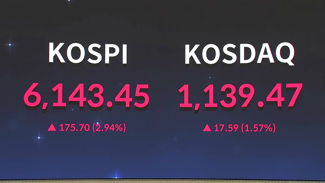 이후 코스피는 상승폭을 좁혀 2.07% 오른 6,091을 기록하며 장을 마감했습니다.