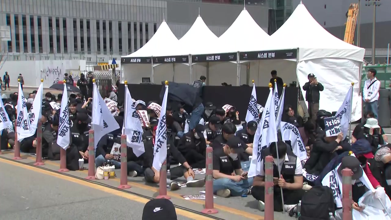 삼성전자 노조가 5월 총파업을 앞두고, 오늘 평택 사업장 앞에서 투쟁 결의대회를 열었습니다.