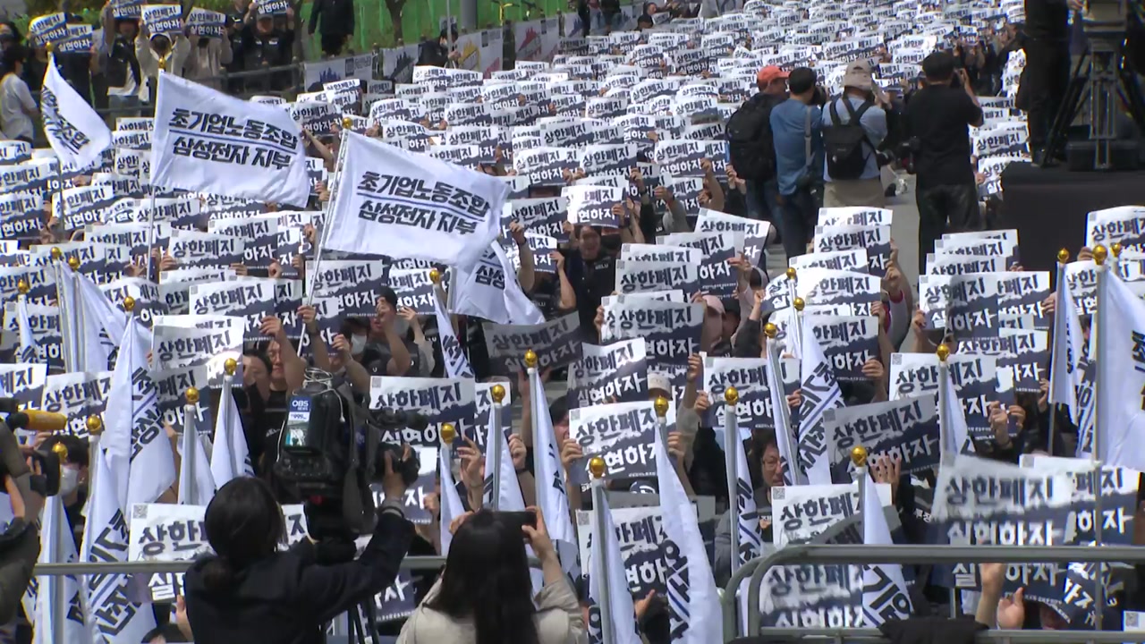 [최승호 / 초기업노조 삼성전자지부 위원장 : 총파업 기간인 18일을 멈추면 18조 원의 공백이 생깁니다. 이것이 숫자로 보일 수 있는 우리의 가치입니다.]