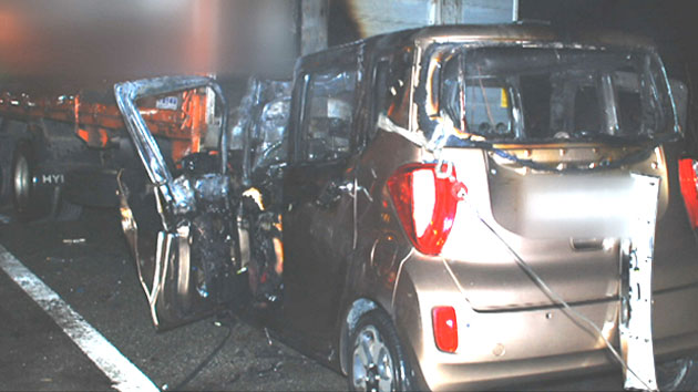오늘 새벽 0시 20분쯤 경기 평택시 방축리에 있는 도로에서 31살 박 모 씨가 몰던 승용차가 갓길에 주차된 9.5톤 화물차를 들이받았습니다.