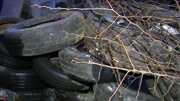 지금 보시는 것처럼 건물 앞은 펜스로 모두 막아놓았고, 펜스 안쪽으로도 겹겹이 타이어를 쌓아두었습니다.