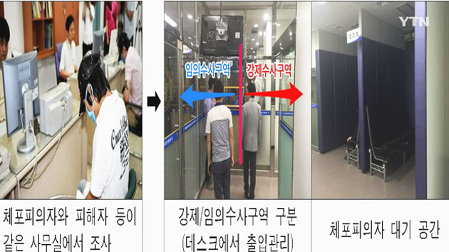 새 수사공간에는 피해자 보호를 위한 별도 자리가 마련됐고, 체포된 피의자와 피해자의 경찰서 내 동선은 분리됐습니다.