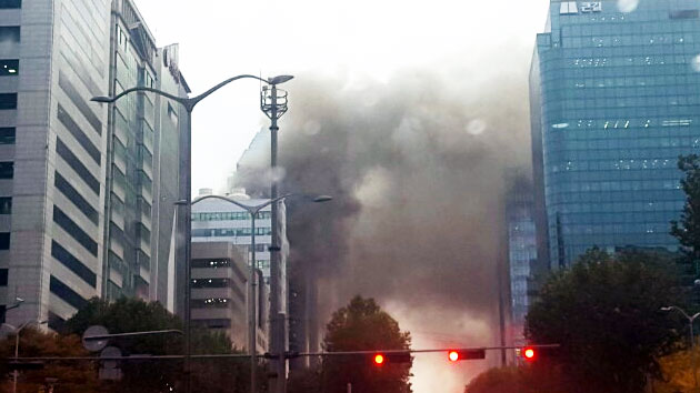 오늘 오후 4시 40분쯤, 서울 역삼역 인근에 있는 고층 빌딩에서 불이 났습니다.