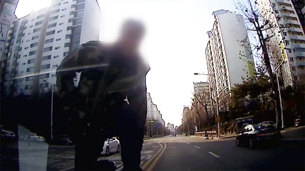 대낮에 도로 한가운데서 '묻지 마' 폭행을 저지른 50대가 경찰에 붙잡혔습니다.