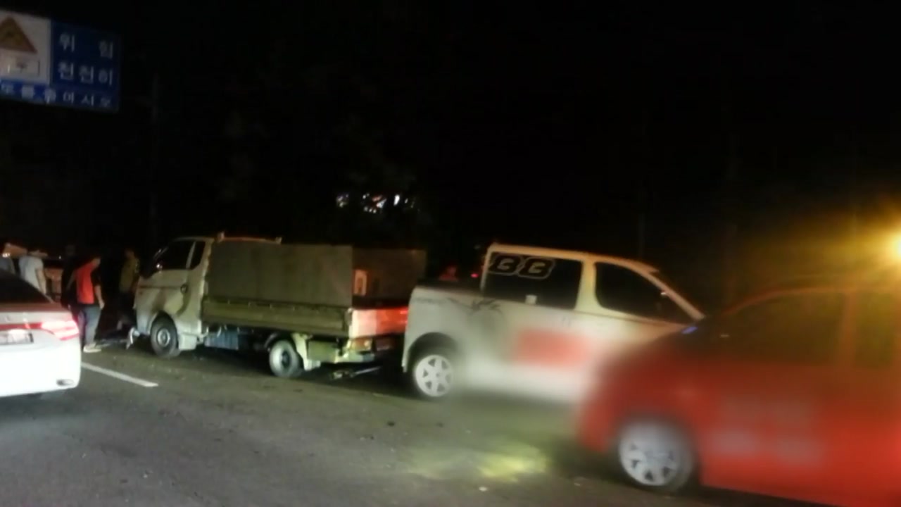 어제저녁(27일) 7시 40분쯤 경기도 성남시 고등동 분당-내곡고속화도로에서 54살 장 모 씨가 몰던 1톤 화물차를 비롯한 차량 4대가 잇따라 부딪쳤습니다.
