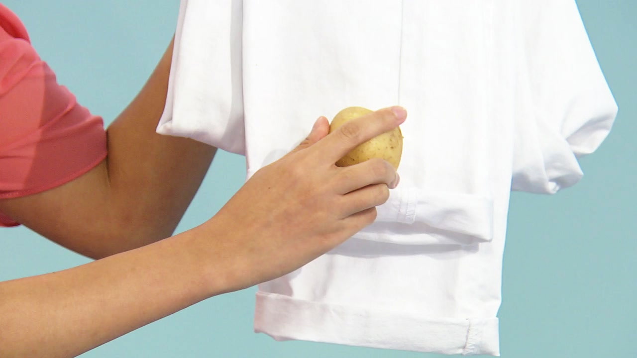 감자는 이렇게 매끈매끈한 면을 이 얼룩 부분에 문질러주면 되는데요.