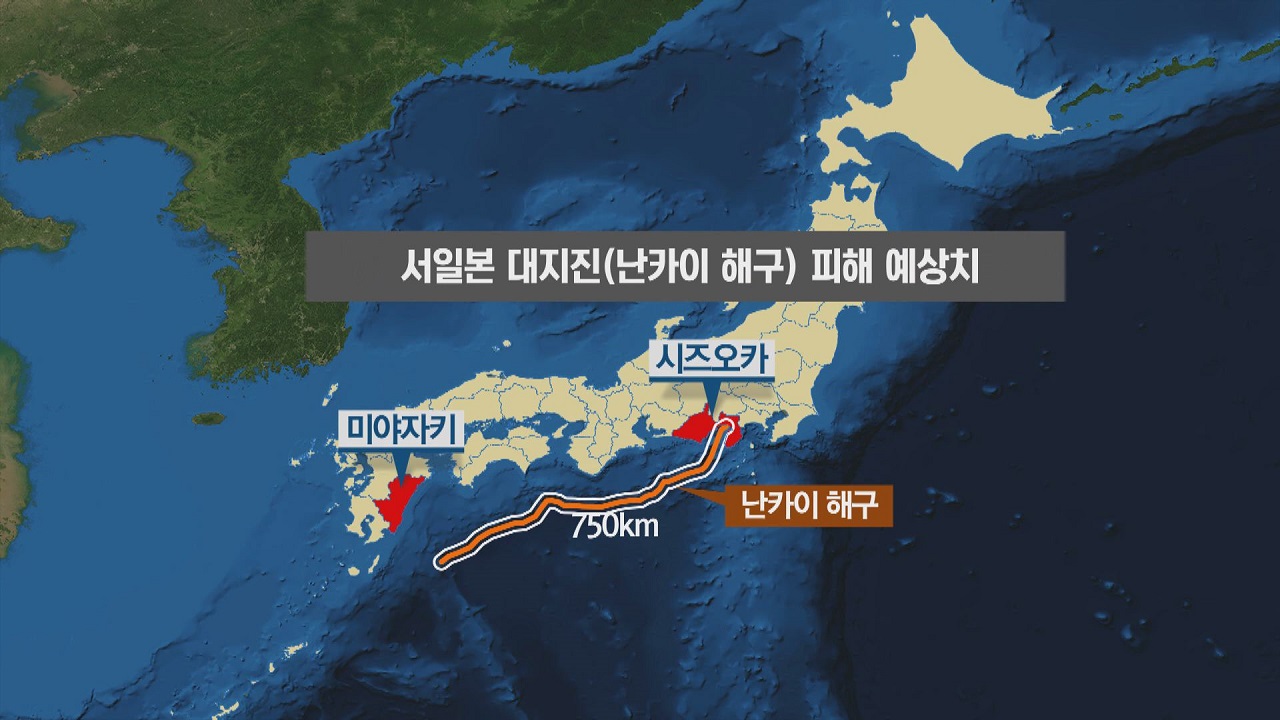일본 시코쿠 남쪽 해저에서부터 태평양에 접한 시즈오카현 앞바다까지 750km에 걸쳐 있는 난카이 해구에서, 규모 8에서 9의 강진이 발생할 가능성이 높다는 연구결과가 나왔기 때문입니다.