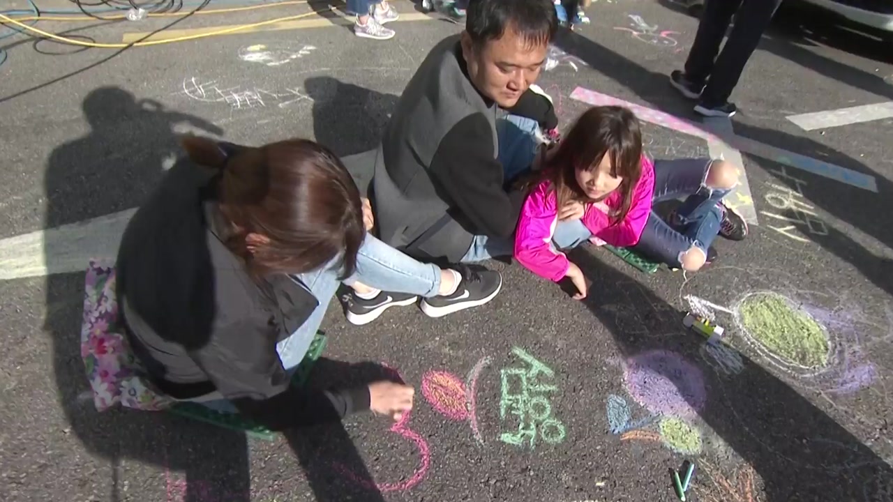 조금 전 오후 3시부터는 첫번째 행사인 '스케치북 행사'가 시작됐는데요, 어린 아이들이 눈에 많이 띕니다.