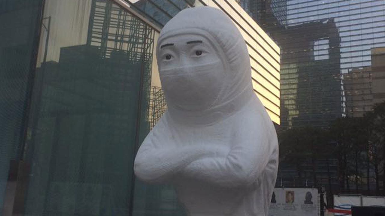이는 기존에 있던 황유미 조각상을 대신해 세워진 조각상이다. 광화문 광장에 박근혜 이재용 조각상을 전시했던 나규환 작가가 제작했다.