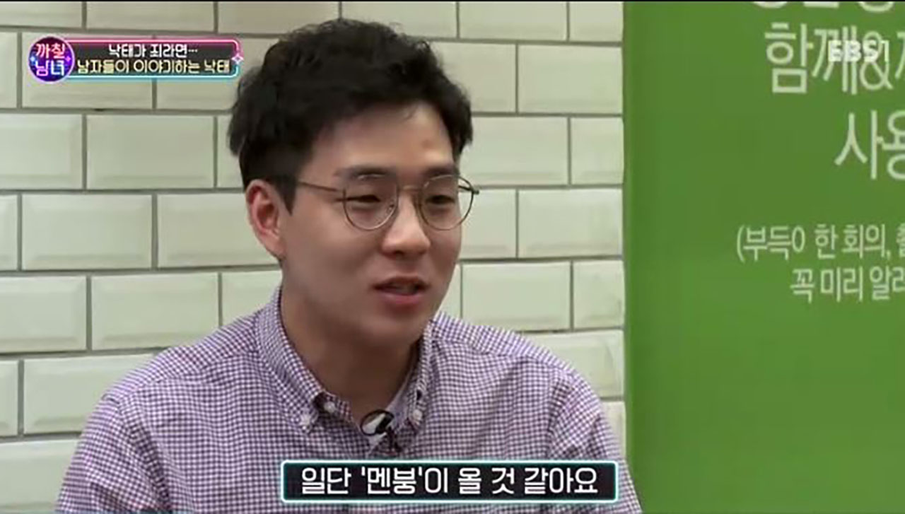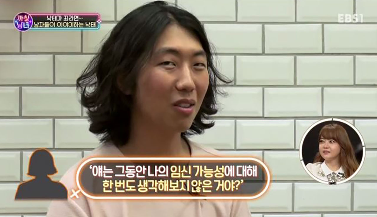 지난 3일 방송된 EBS1 '까칠남녀'는 '낙태가 죄라면'을 주제로 진행됐다. 이날 방송에서는 세 명의 남성이 출연해 '만일 내 애인이 원치 않는 임신을 한다면?'이라는 질문에 관해 이야기를 나눴다.