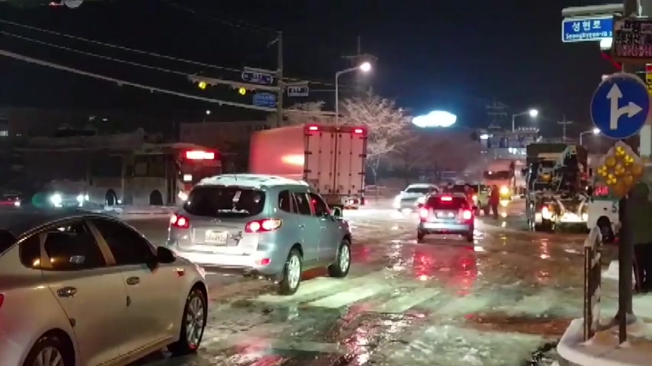 제설작업이 늦어진 데다, 내린 눈이 얼어붙으며 도로가 빙판길로 변해 정체는 더욱 심해졌습니다.