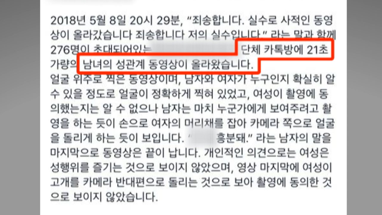 앞서 항공대에서는 지난 8일 항공운항학과 재학생 270여 명이 포함된 단체대화방에 성관계 동영상이 올라와 논란이 일었습니다.