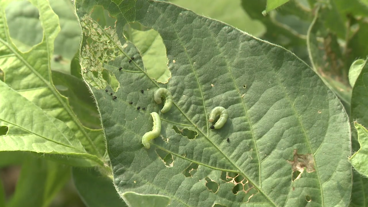 [홍종원 / 콩 재배농민 : 고온에 가물다 보니까 파밤나방이 많이 발생해서 방제에 어려움을 많이 겪고 있고 예년에 비해서 두 세배 더 방제해도 효과가 별로 없는 실정입니다.]