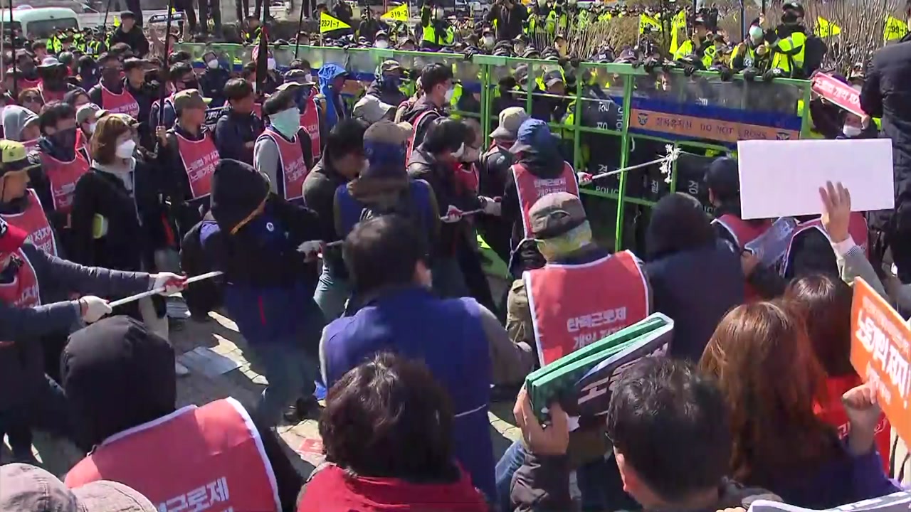 앞서 오전에는 김명환 위원장도 경찰 차단막을 넘어 진입을 시도하다가 연행되기도 했습니다.