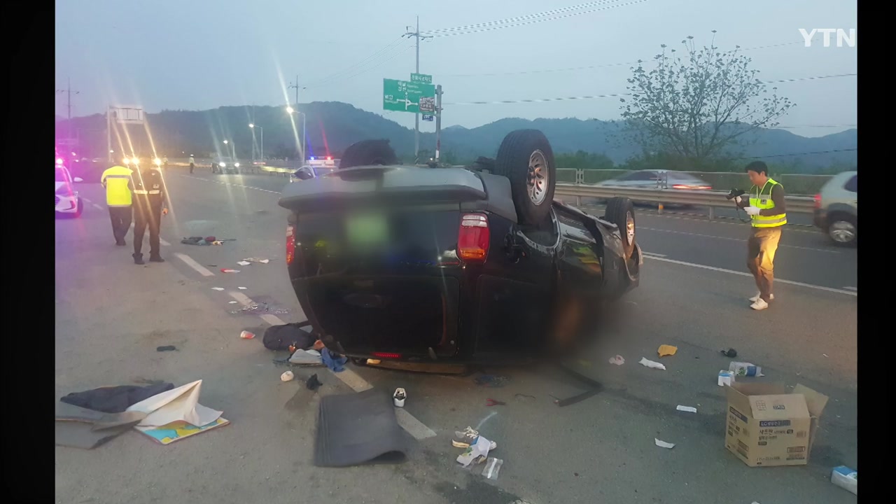 어제(5일) 오후 7시쯤 전라남도 영암군 영암읍의 한 도로에서 광주 방향으로 달리던 SUV가 우측 가드레일을 들이받고 전복됐습니다.