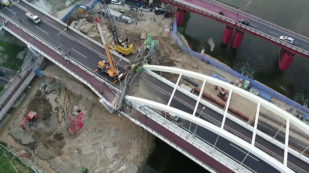 수십 미터 길이의 장비는 반대편에 있는 인도까지도 덮쳤습니다.