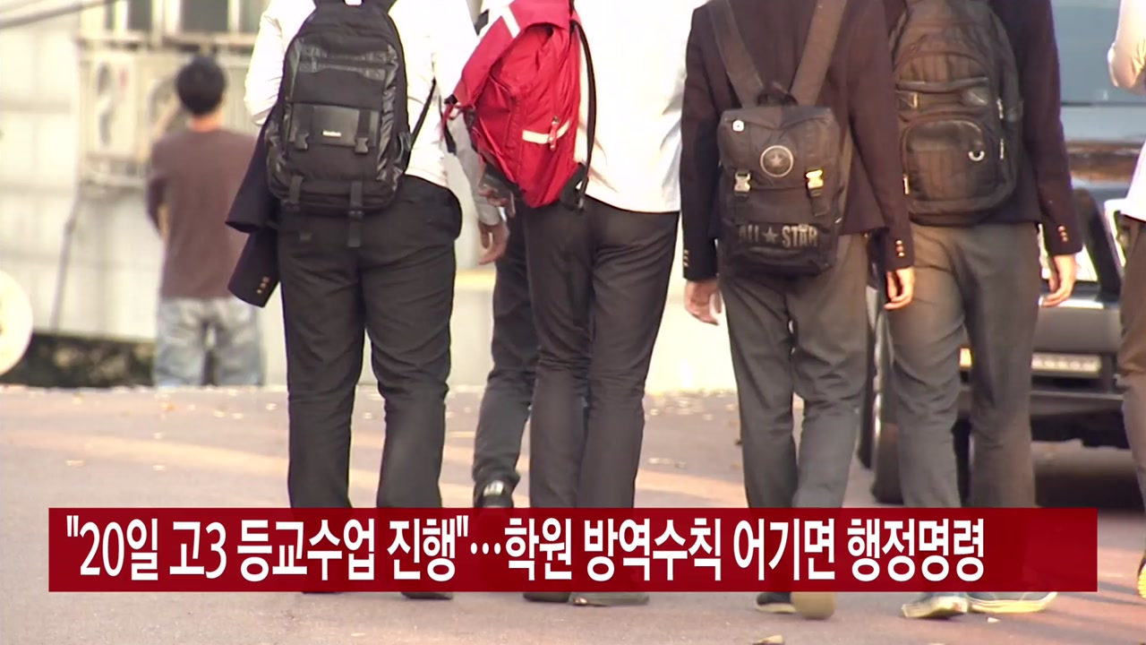 ■ 고3 등 학생들의 확진이 이어지고 있지만, 정부는 20일 고3 등교수업을 예정대로 하기로 했습니다. 영어유치원과 SAT 학원 등에 대해서는 긴급 점검을 하고 방역수칙을 안 지키는 학원은 휴원 등 행정명령을 내리기로 했습니다.