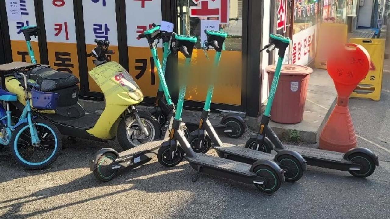 가게 앞에 킥보드들을 대충 세워놓기도 하는데, 바람이 불어 넘어지는 경우도 있습니다.