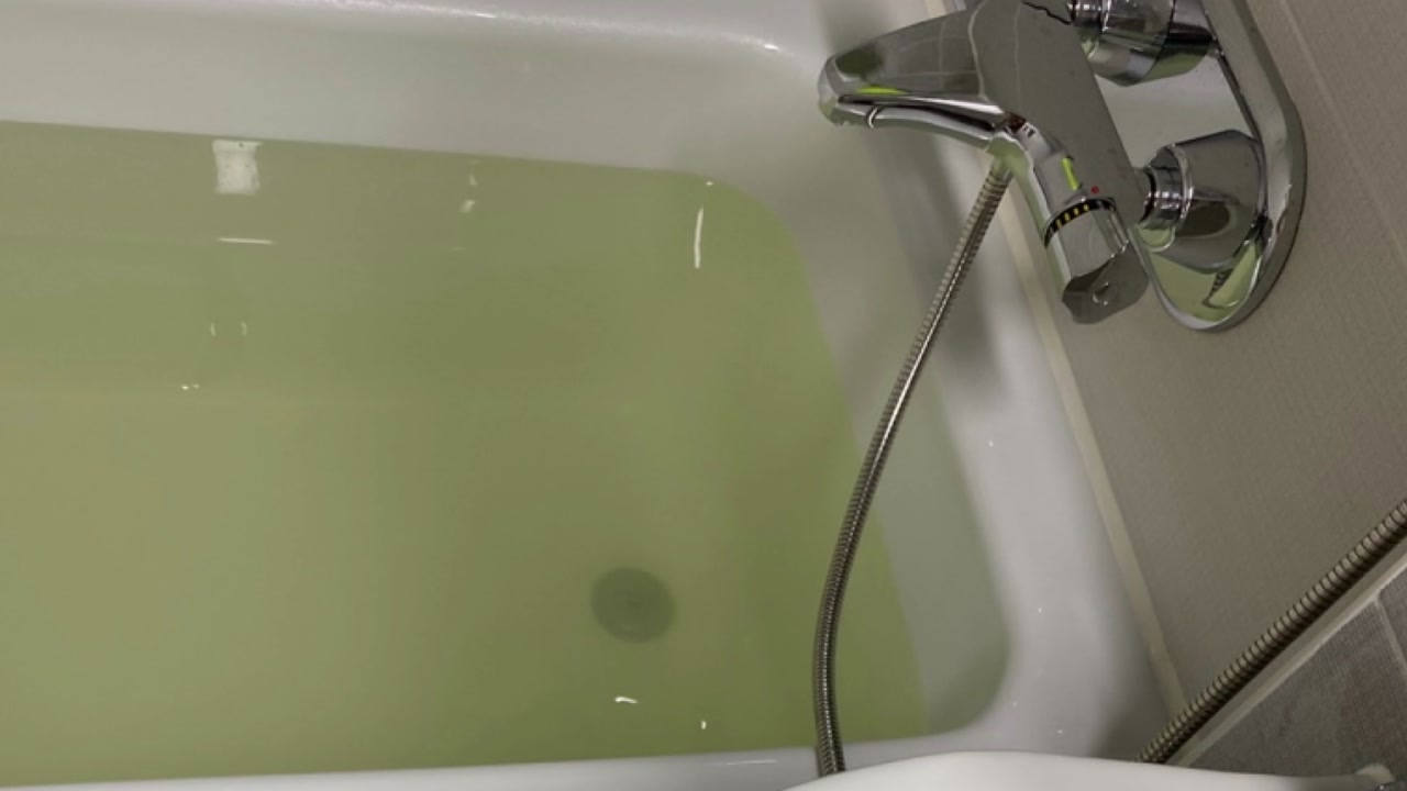 샤워기 물을 틀자 누런 물이 쏟아져 나옵니다.