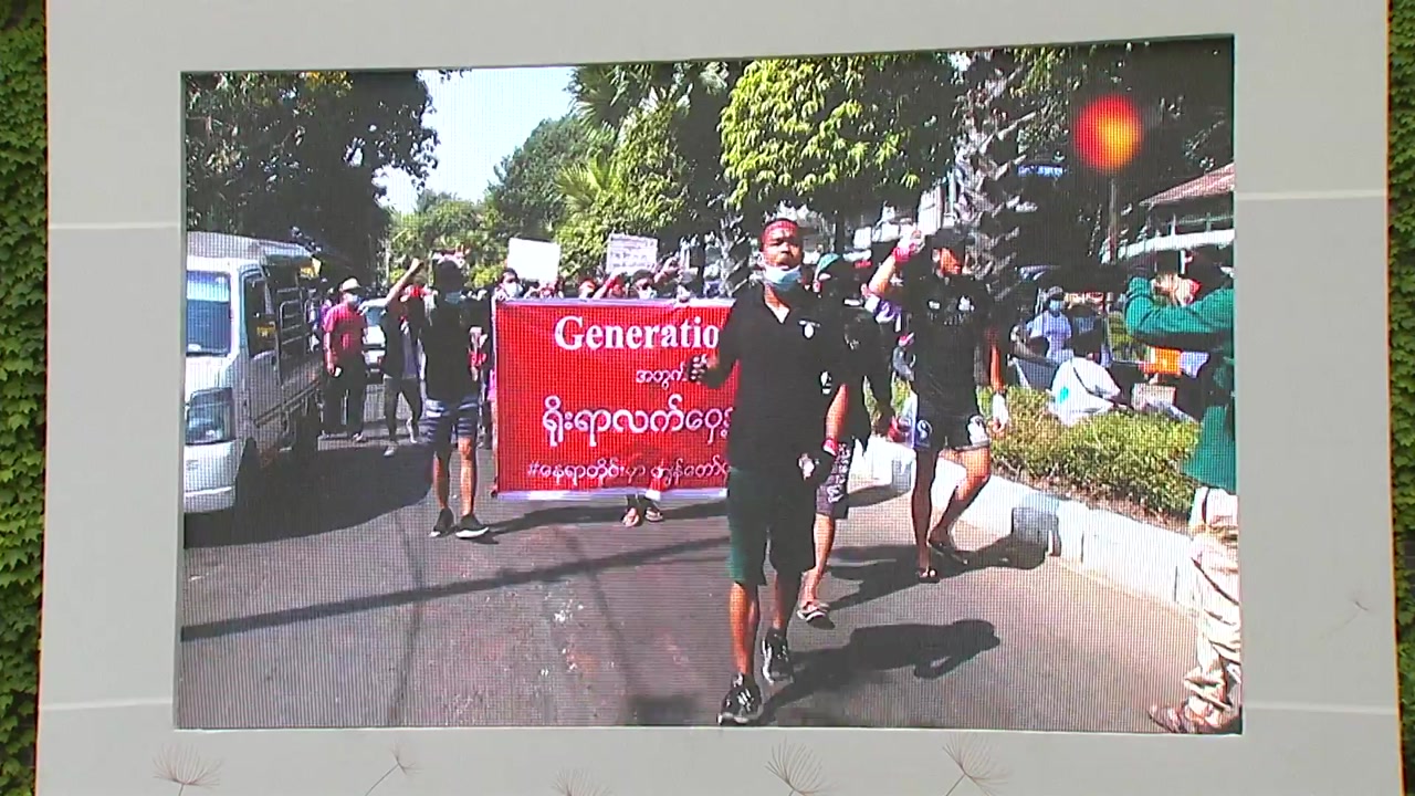 22살 대학생이 이른바 빨갱이로 몰려 잔혹한 고문 끝에 숨진 옛 대공분실이 있던 자리에서 미얀마 시민들의 시위 모습이 상영됩니다.