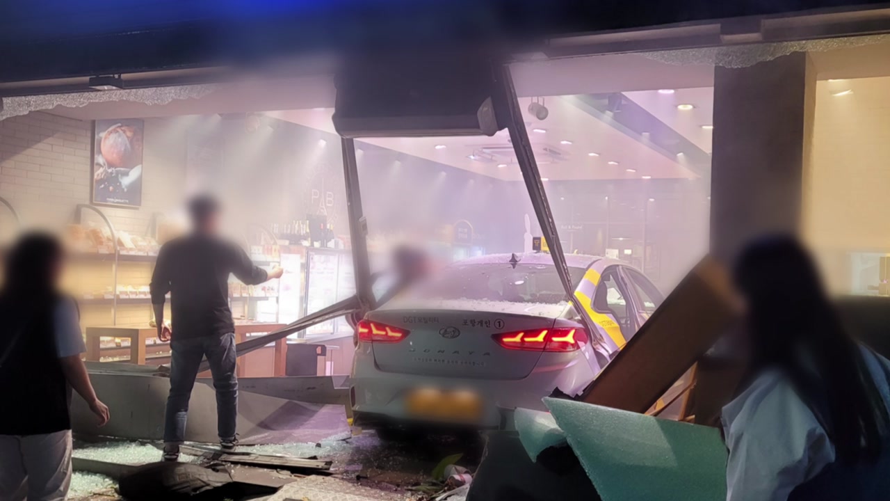 어젯(9일)밤 8시 50분쯤 경북 포항시 신흥동의 한 도로에서 택시가 제빵전문점으로 돌진했습니다.