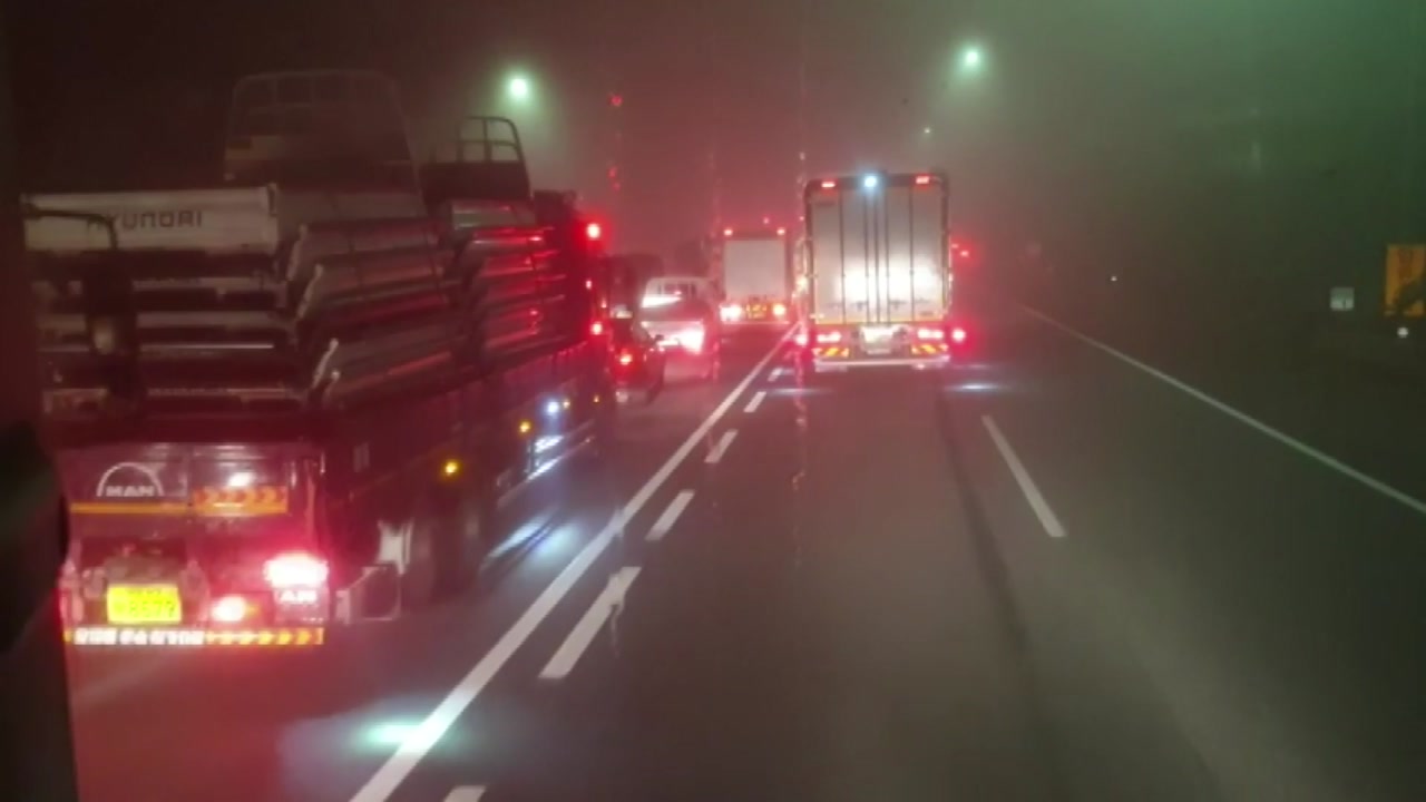 도로 위에 차량이 꼼짝없이 멈춰 선 모습인데, 이마저도 짙은 안개 때문에 뿌옇게 보입니다
