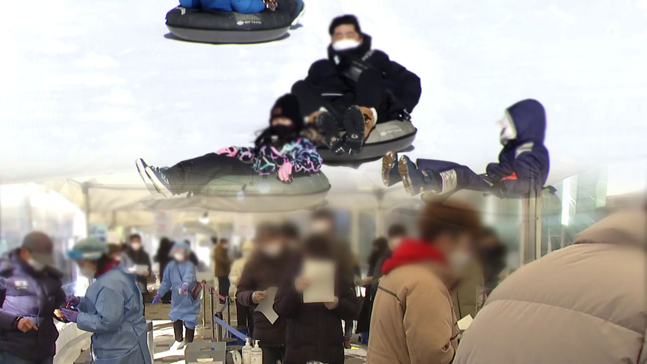 신이 난 아이를 바라보는 부모들도 함께 즐거워하며 막바지 겨울 축제를 즐깁니다.