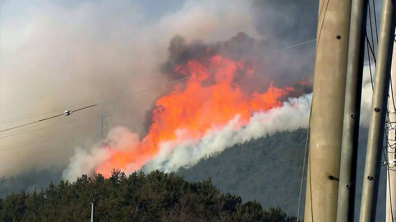 산림 당국은 낮 12시 40분쯤 산불 대응을 3단계로 격상해 진화 작업에 총력을 쏟았고, 소방청도 소방력 동원 1호를 내린 뒤 8개 시도의 소방력을 모아 대응하고 있지만 강풍에 진화가 쉽지 않습니다.