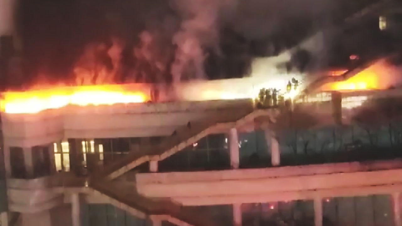 육교 너머로 건물 한 개 층이 타고 있을 정도로 규모가 큰 화재입니다.