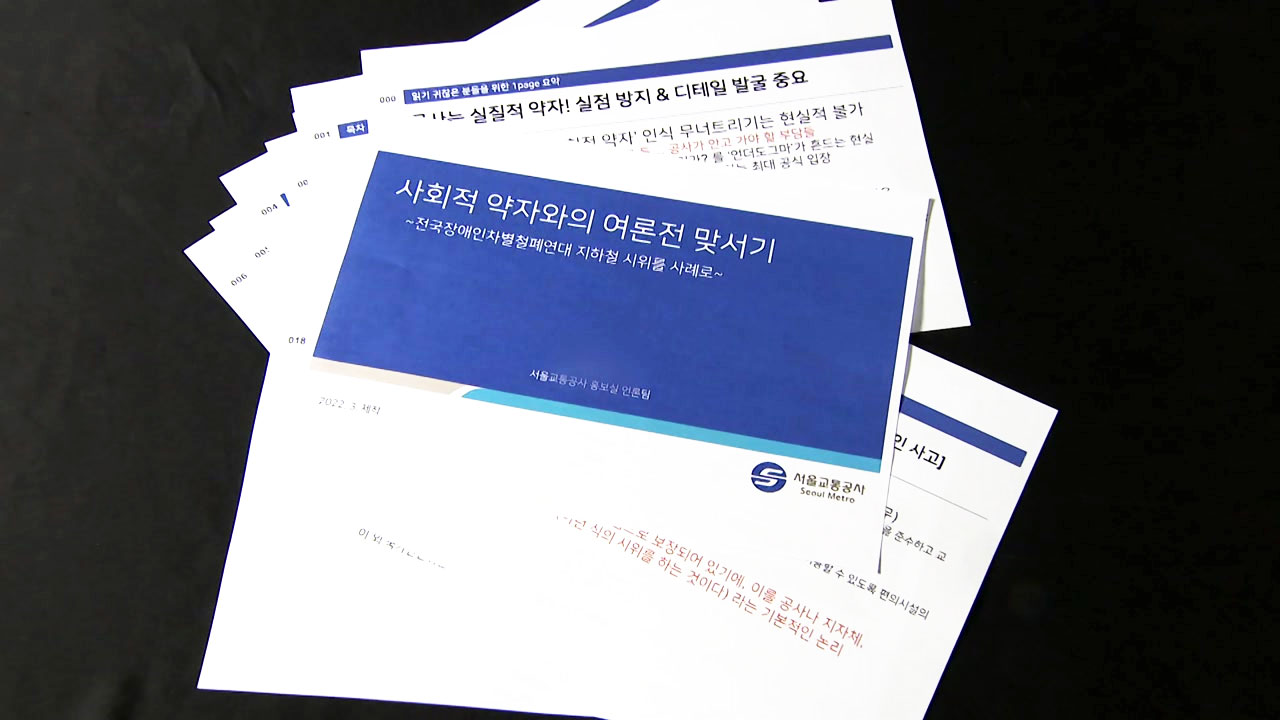 그런데 YTN이 입수한 내부 문건에는, 서울교통공사의 이 같은 불편한 인식이 담겨 있었습니다.