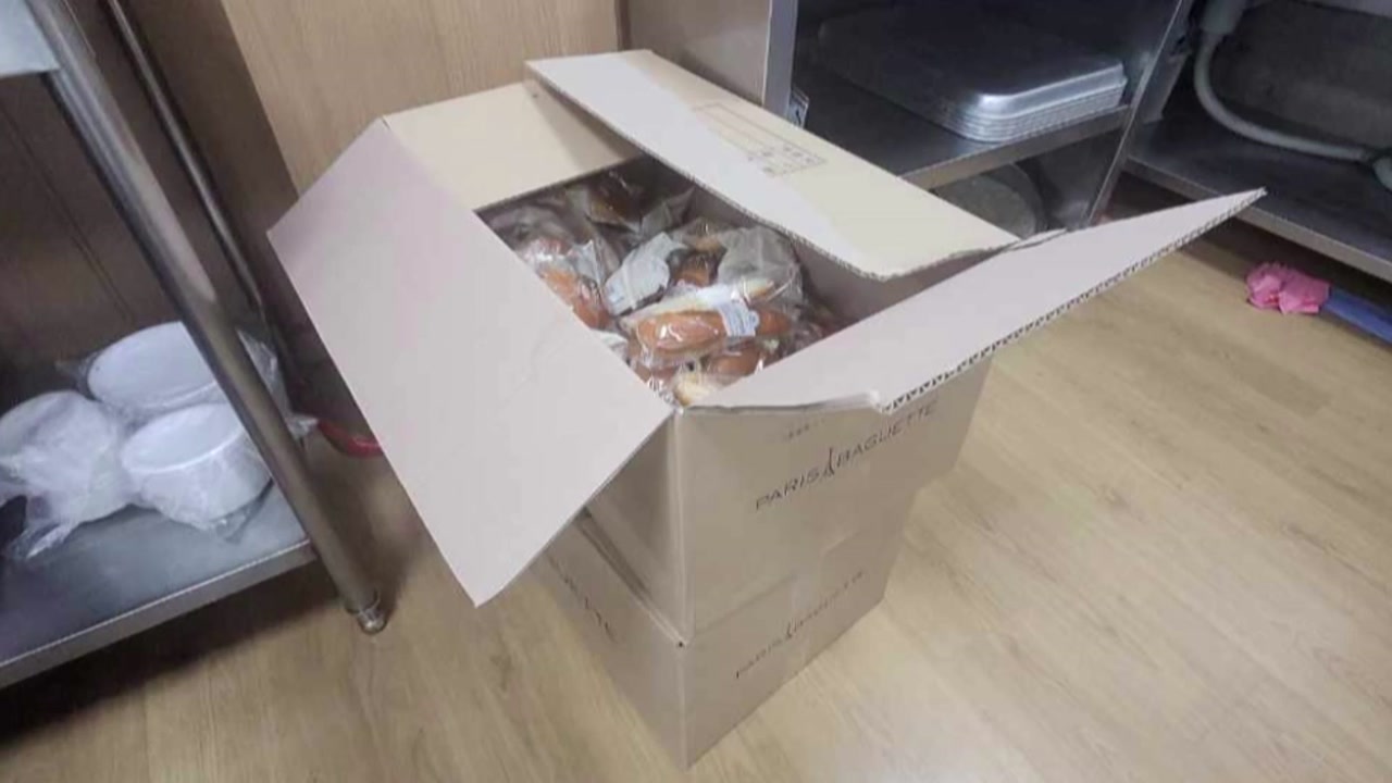 상자 안에서 다름 아닌 SPC 파리바게뜨의 빵들이 가득 들어 있었다고 합니다.