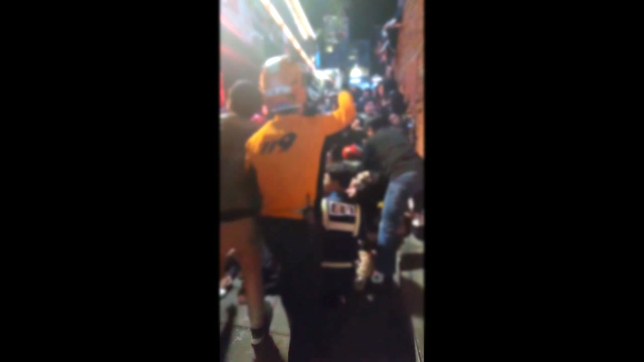 어젯밤 11시 10분쯤 사고 현장 아래 길목에서 사람들이 쌓여 있는 모습을 함께 보실 수 있습니다.