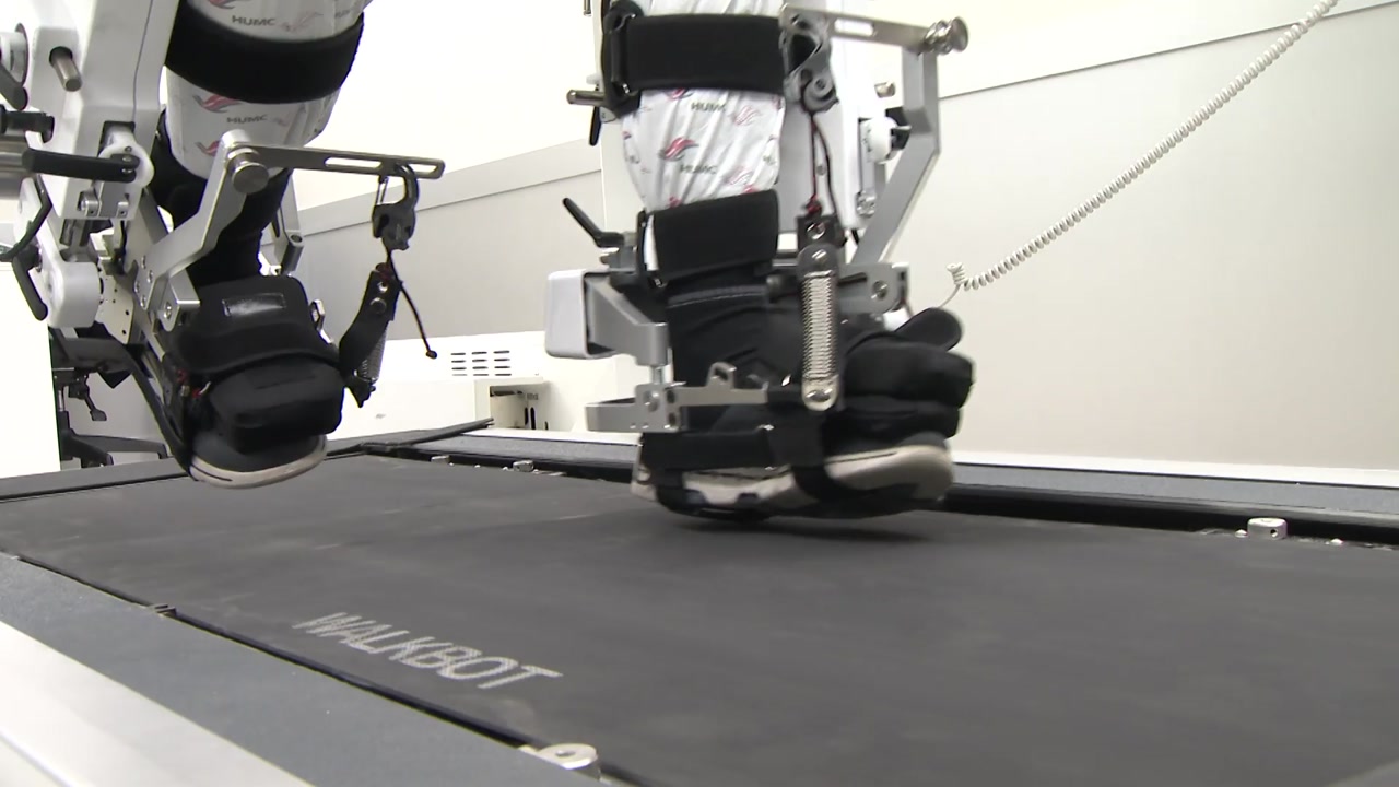 뇌졸중이나 척수 손상으로 마비 증상이 온 환자의 보행 재활을 돕는 로봇입니다.
