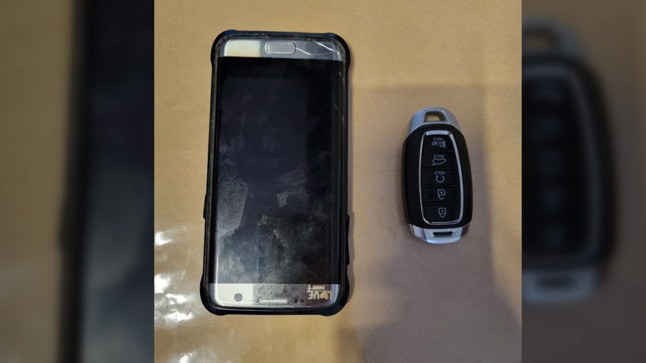 식당 손님이 두고 간 휴대전화와 차 키입니다.