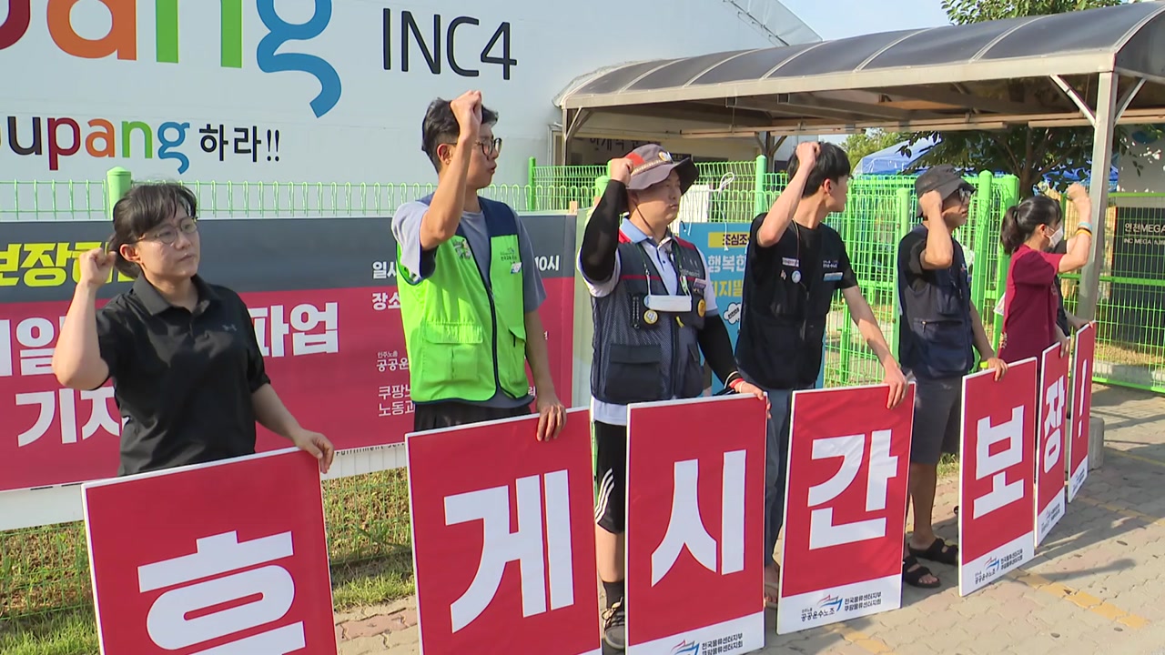 쿠팡 물류센터 노동자들이 폭염 속 휴게 시간 보장을 촉구하며 하루 동안 총파업을 벌였습니다.