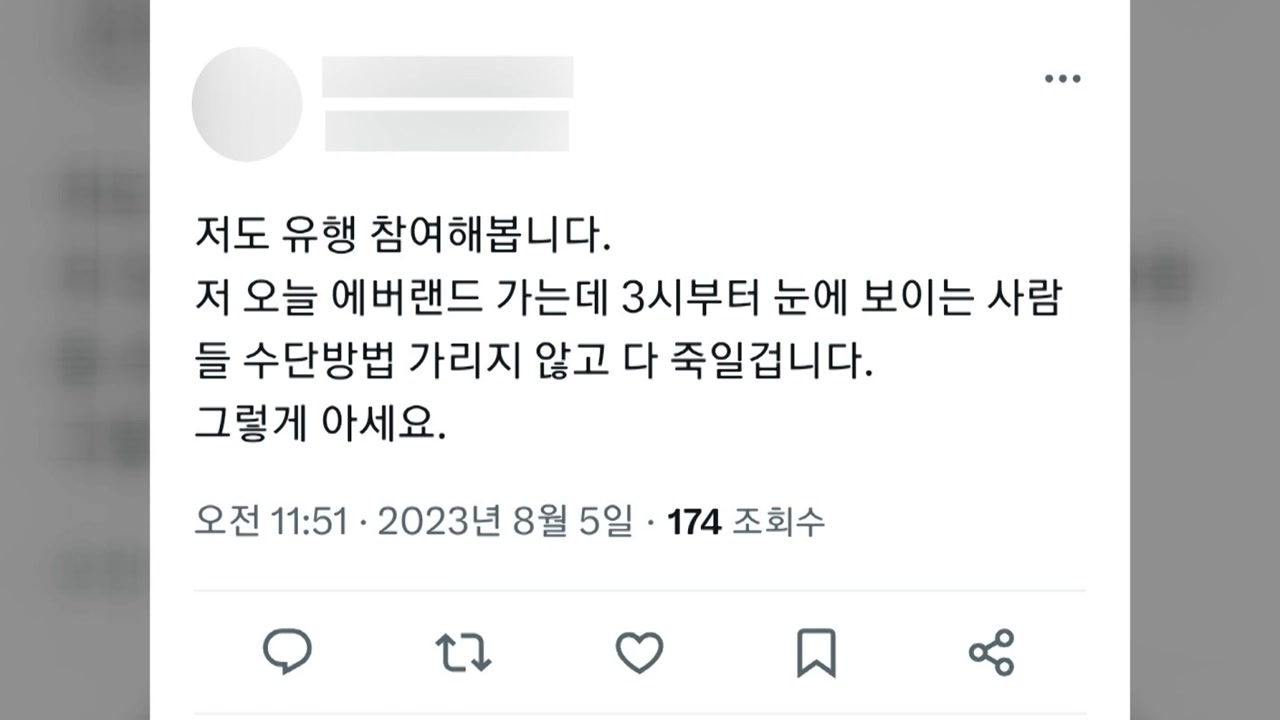 "에버랜드에 가는데 눈에 보이는 사람들을 다 죽이겠다."