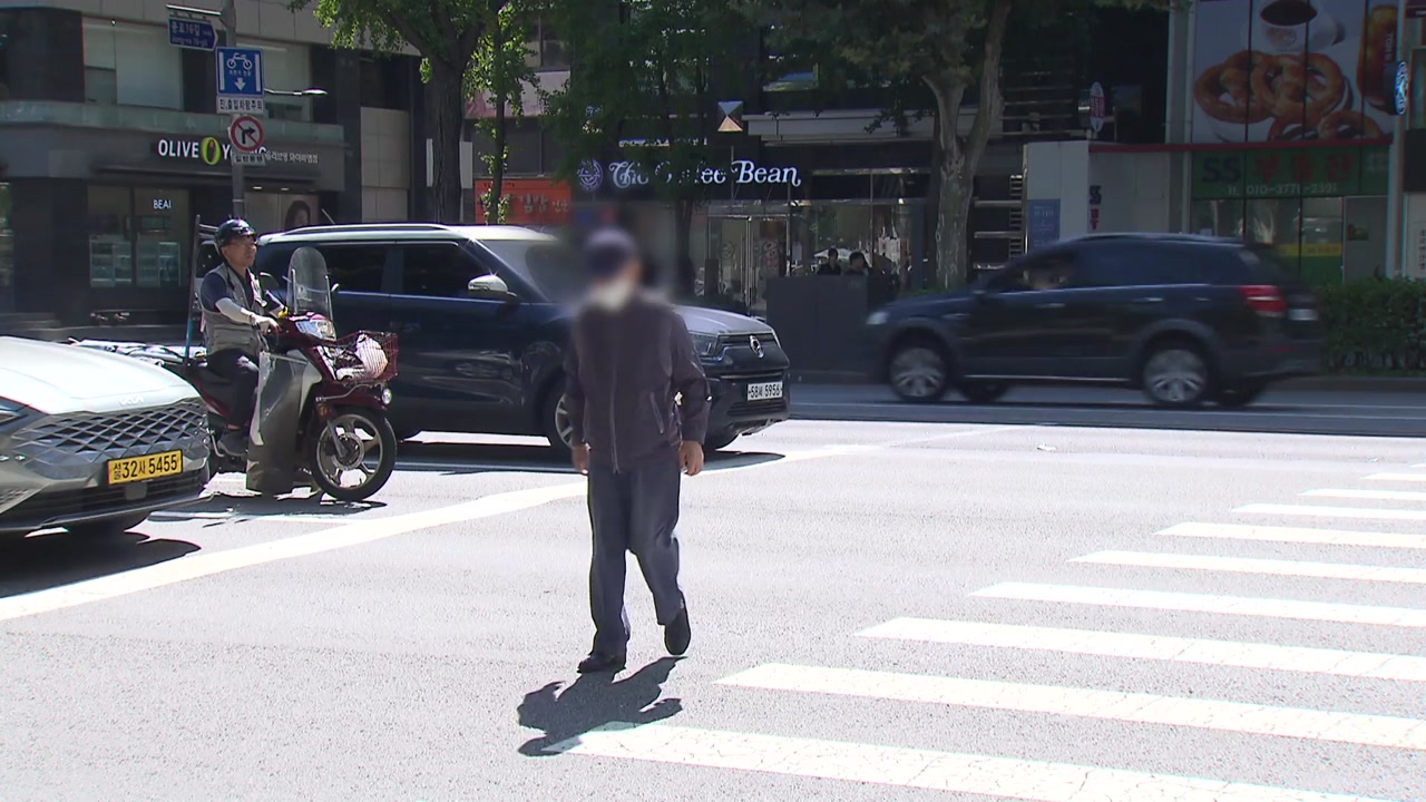 8차선 대로를 가로지르는 이 건널목의 보행 신호는 40초 남짓, 걸음이 느린 노인에게는 짧다 못해 두렵기까지 합니다.