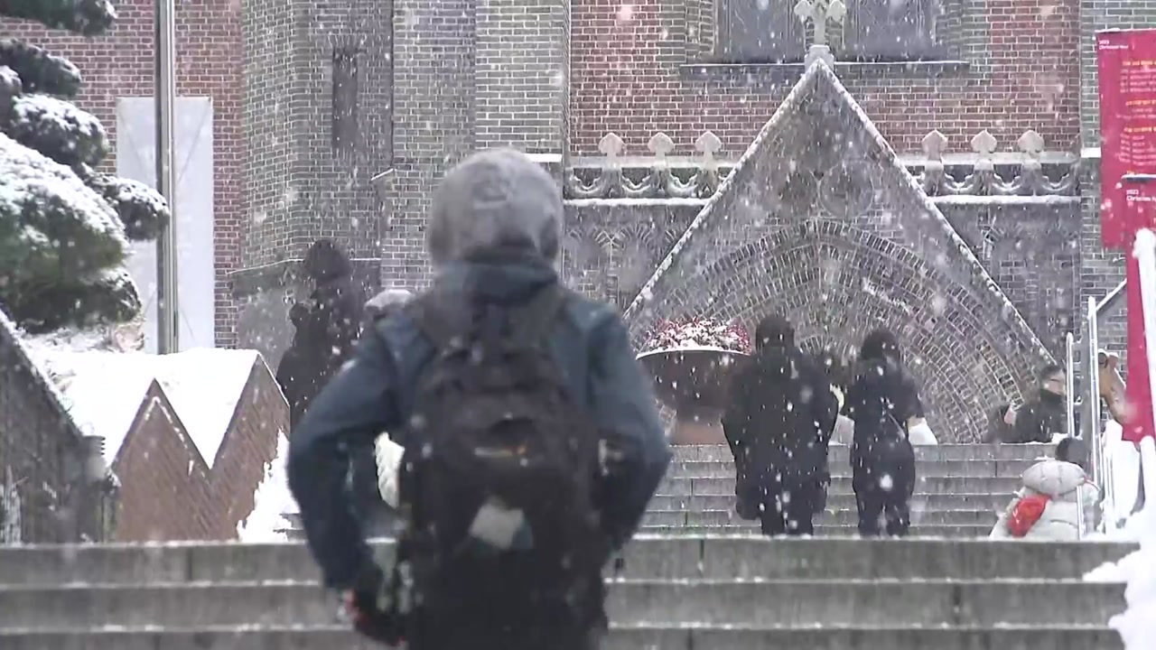 8년 만의 화이트 크리스마스에 도심 곳곳이 북적이는 가운데 성탄 미사를 위해 성당을 찾은 사람들의 발길도 끊임없이 이어지고 있습니다.