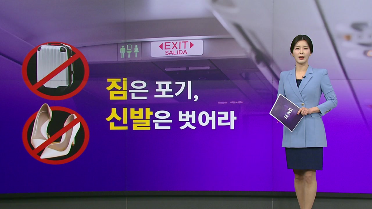 승무원 안전 수칙을 보면 승무원은, 승객들이 짐을 포기하고 신발은 벗은 채 슬라이드를 타도록 해야 합니다.
