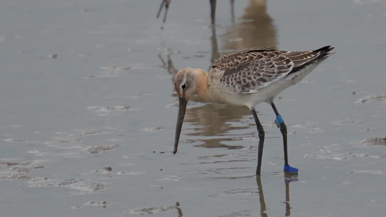 또, 도요새 발목에 위치를 추적할 수 있는 가락지를 부착해 이동 경로를 추적하고 있습니다.