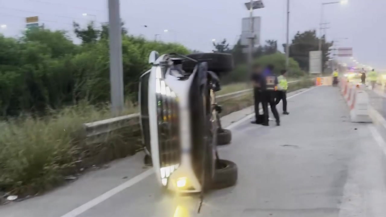 오늘(11일) 새벽 4시 50분쯤 인천 서구 청라국제도시역 근처 왕복 8차선 도로에서 음주운전 차량이 방호벽을 들이받고 넘어졌습니다.