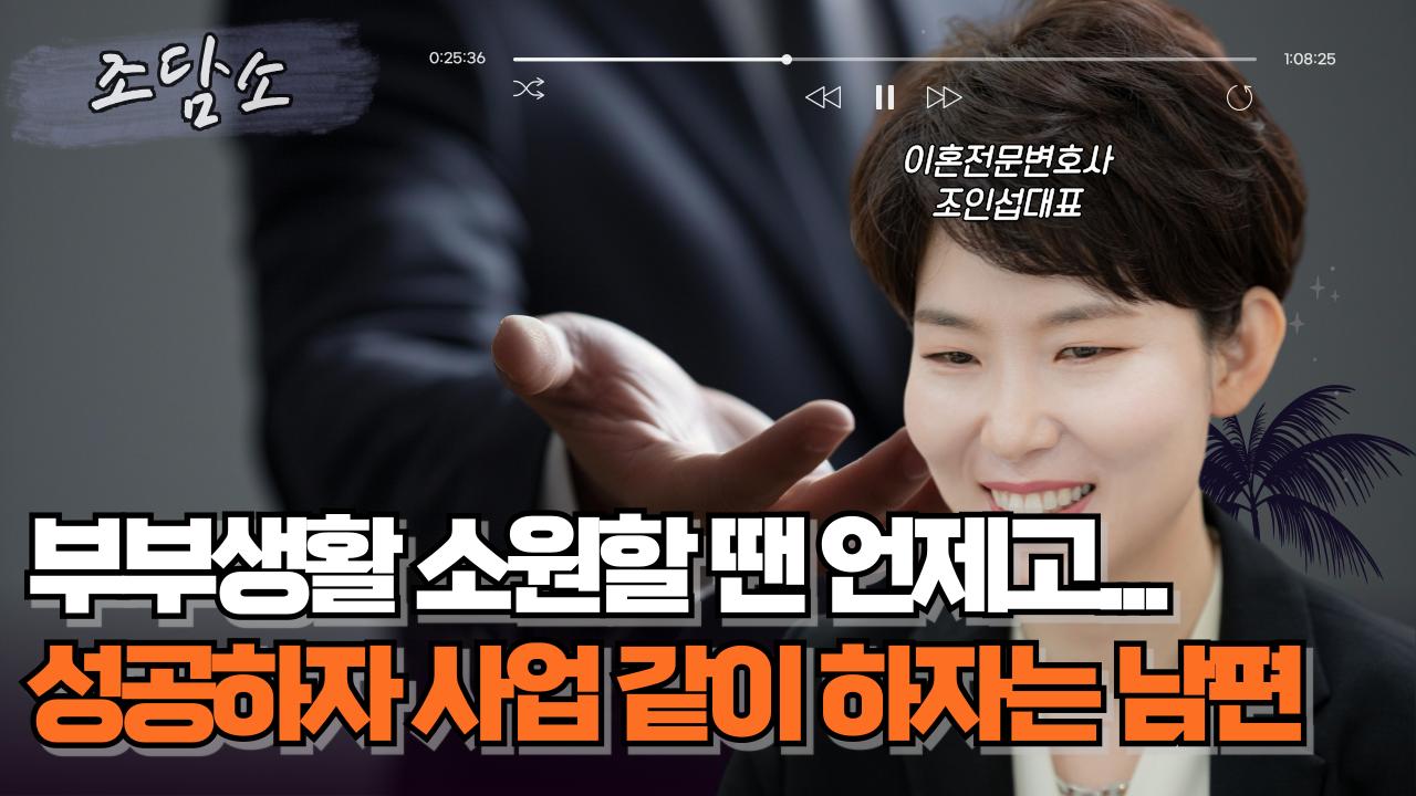 ◇ 조인섭: 자... 오늘의 고민 사연은 어떤 내용일까요? 저는 20년 넘게 이기적인 남편과 살면서 너무 힘들었습니다. 가정에 애정이 없던 남편은 아이가 생겼을 때도 밖으로 돌았고 그러다가 해외 발령이 났습니다. 함께 해외에 가려다가/ 남편이 자주 한국에 오겠다고 했고, 저도 진행하던 사업이 있기에 동의했습니다. 그런데 남편은 시간이 지날수록 연락을 뜸하게 하더니 한국에 1년 이상 오지 않기도 했습니다. 저와 아이에 대해 관심이 없었고, 양육비도 주다 말기를 반복했습니다. 몇 년 간의 해외 발령을 마치고 돌아왔지만 생활방식이 맞지 않아 다툼만 생겼습니다. 그러던 중 남편이 어떤 여자와 연인 사이처럼 친근하게 전화통화하는 걸 들었고 크게 싸왔습니다. 그날 이후 남편은 집을 나갔고, 저도 잡지 않아서 별거가 시작되었습니다. 다만 아이가 있어서 이혼 이야기는 하지 않았습니다. 가족 대소사에도 참여했고, 아이를 위해 생일 때는 남편과 함께 식사를 했고, 해외여행도 몇 차례 갔죠. 그런 생활을 6-7년 하는 동안 제 사업은 승승장구해서 많은 수익을 냈습니다. 반면에 남편은 보증을 잘못 서서 피해를 입게 됐죠. 금전적으로 힘들어졌는지 도와달라고 그러더라고요. 그래서 차용증을 쓰고 돈을 빌려줬습니다. 그런데 그걸로도 부족했는지 몇 개월 후에 또다시 저한테 목돈을 달라고 했고 제가 소유한 부동산을 매각해서 사업을 하자는 말도 했습니다. 그 말을 듣고 저는 이혼을 결심했고, 남편도 동의했는데요. 남편은 현재 재산 중 반을 내놓으라고 하는 중입니다. 별거 이후에 취득한 자산들은 모두 제 사업으로 번 것인데, 재산분할대상에서 빠져야 하는 것 아닌가요? 그리고 제가 남편에게 빌려준 돈을 따로 받을 수 있는 것인가요? 남편이 별거 이후에 양육비를 안 준 부분에 대해서는 청구할 수 있는 것인가요? 이혼에 있어서 재산분할 시점을 언제로 보느냐에 따라 재산이 크게 차이가 날 수 있는데요. 재산분할 시점 언제로 잡아야 하나요?