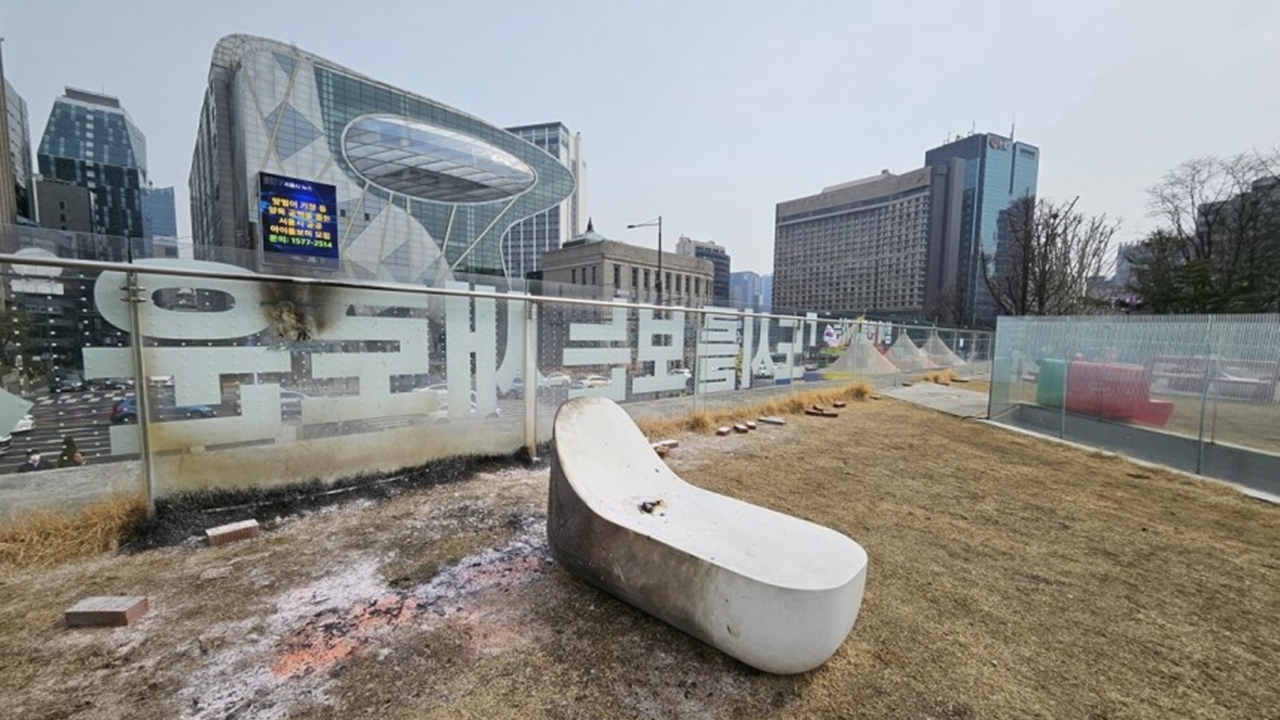 오늘(7일) 낮 12시쯤 서울 중구 도시건축전시관 옥상에서 윤석열 대통령 지지자로 추정되는 한 남성이 몸에 불을 붙이는 일이 발생했다.