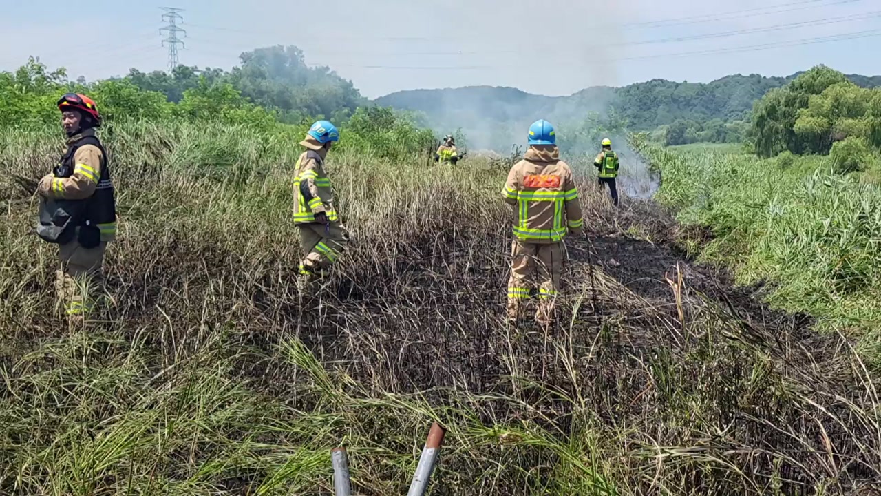 이 불로 다친 사람은 없었지만, 갈대밭 천㎡ 정도가 불에 탔습니다.